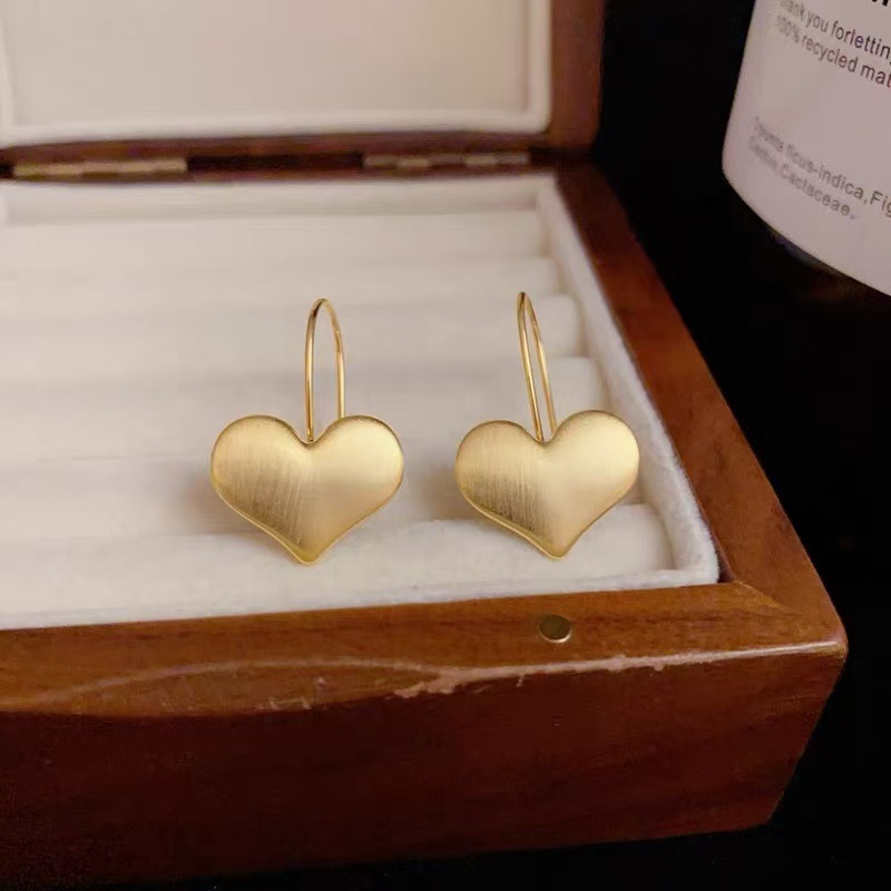 Super Fairy Metal Brushed Love Earrings and Earrings Korean Style Sweet Atmosphere Niche Design