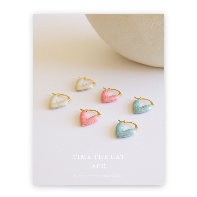 Zhou Yutong's Love Dropping Oil Earrings Fresh and Sweet Niche Simple Design Light Luxury High-end All-match Earrings