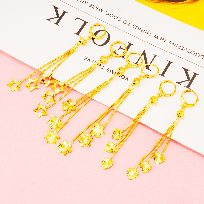 Vietnamese Sand Gold Earrings Long Women's Simulated Gold Flower Tassel Earrings Elegant Sweet Ladies Earrings Earrings