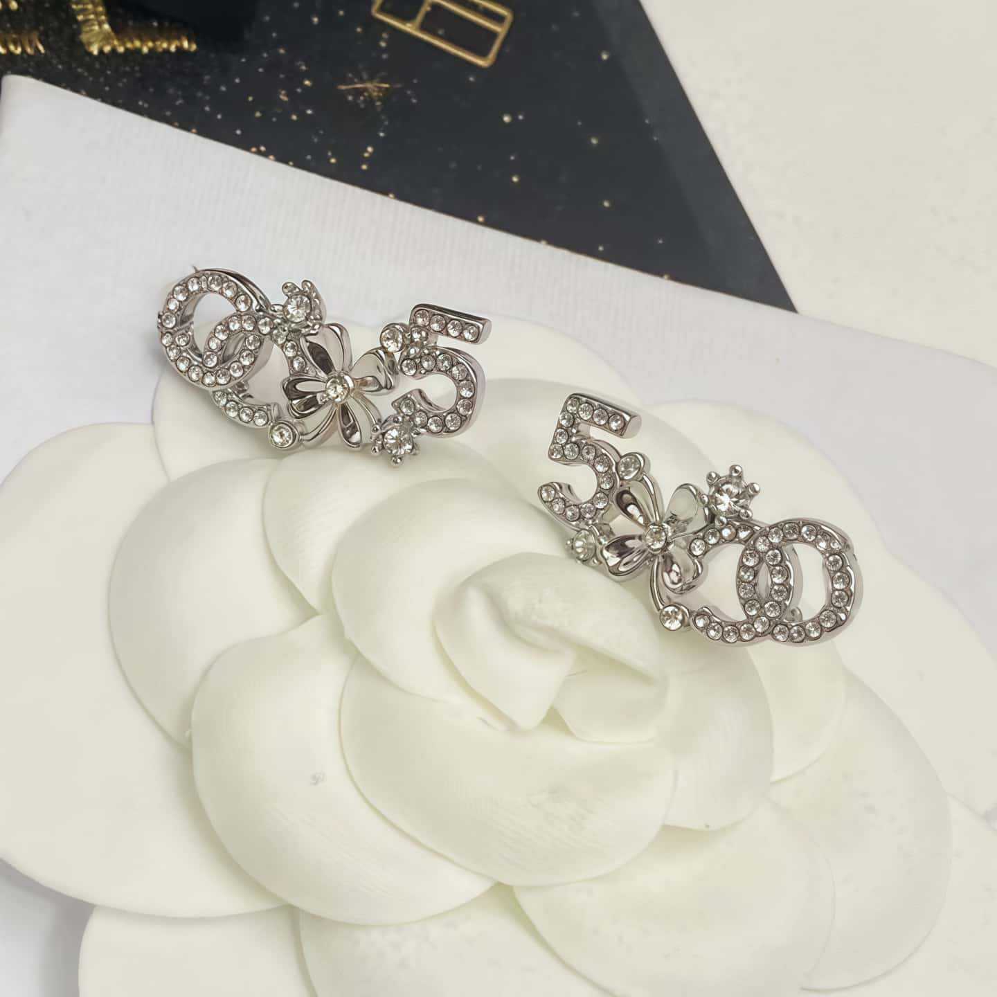 New Small Fragrant Style Double C Full Diamond Earrings Xiangjia C Sweet Celebrity Earrings Niche High-end Accessible Luxury Fashion Accessories