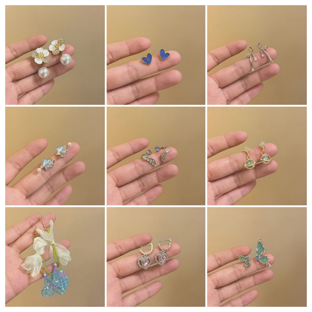 European and American Cross-Border Hot-Selling Fashion Trendy Oil-Dropping Heart Butterfly Imitation Pearl Earrings Set for Women Earrings