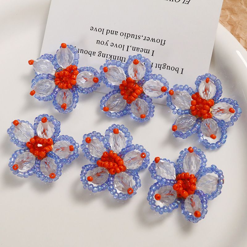 Pastoral Style Contrast Color Braided Beaded Flower Earrings Women DIY Acrylic Accessories Sweet Earrings Women Material Wholesale