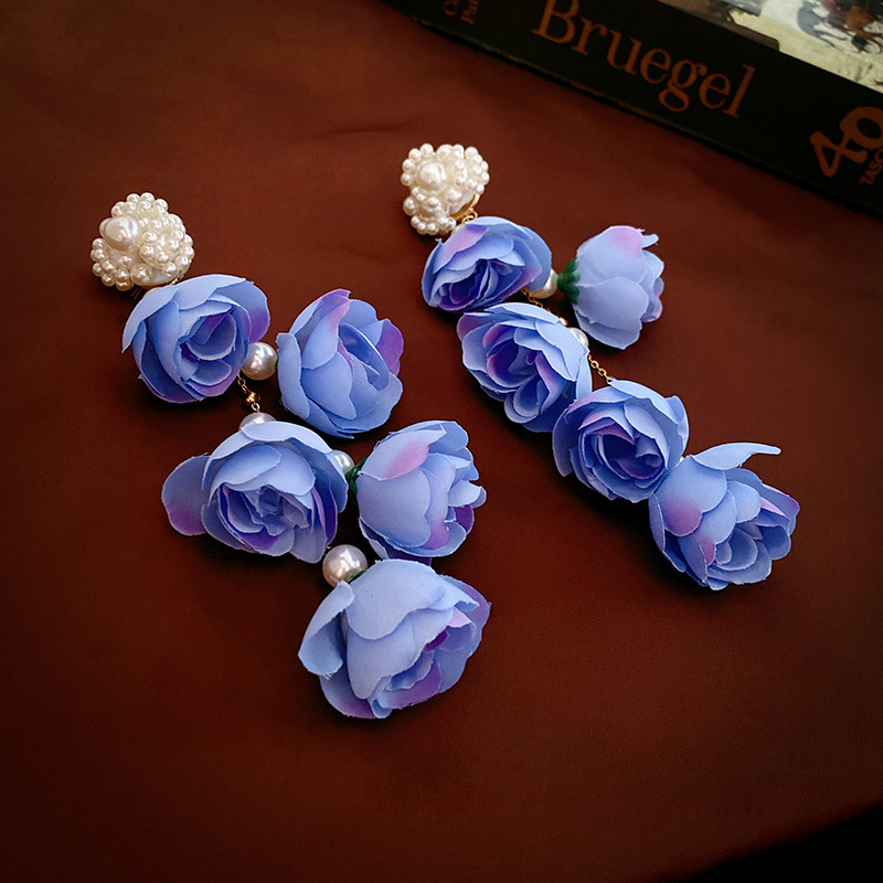 Holiday style imitation pearl lace flower tassel silver pin earrings sweet gradient long temperament high-end earrings for women