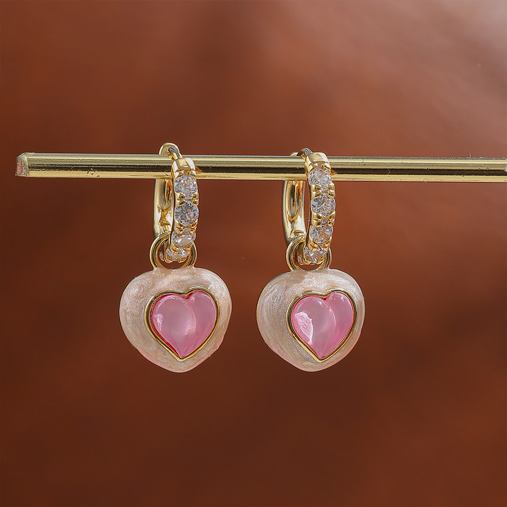 Sweet and Cute Pink Heart Earrings Fashion High-end Pink Love Inlaid Zircon Earrings Internet Red Style Color-matching Earrings
