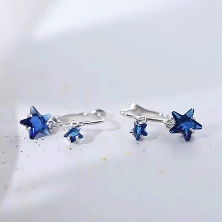 Korean Version 925 Sterling Silver Blue Star Earrings 2025 New Trendy Earrings Cute Niche Ear Cuffs Women's Accessories