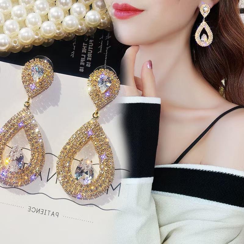 Douyin Female Anchor Recommends Super Shiny Full Diamond Earrings, Sweet Elegant and Personalized Earrings, Design Water Drop Diamond Earrings