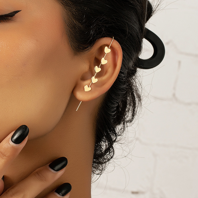 Cross-border Trend Simple Fashion Love Ear Hanging Internet Celebrity Temperament Commuting Peach Heart Earrings One-piece Piercing Earrings for Women