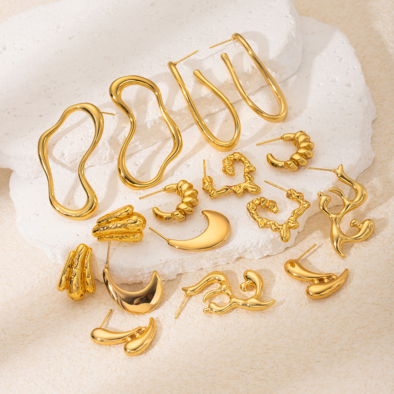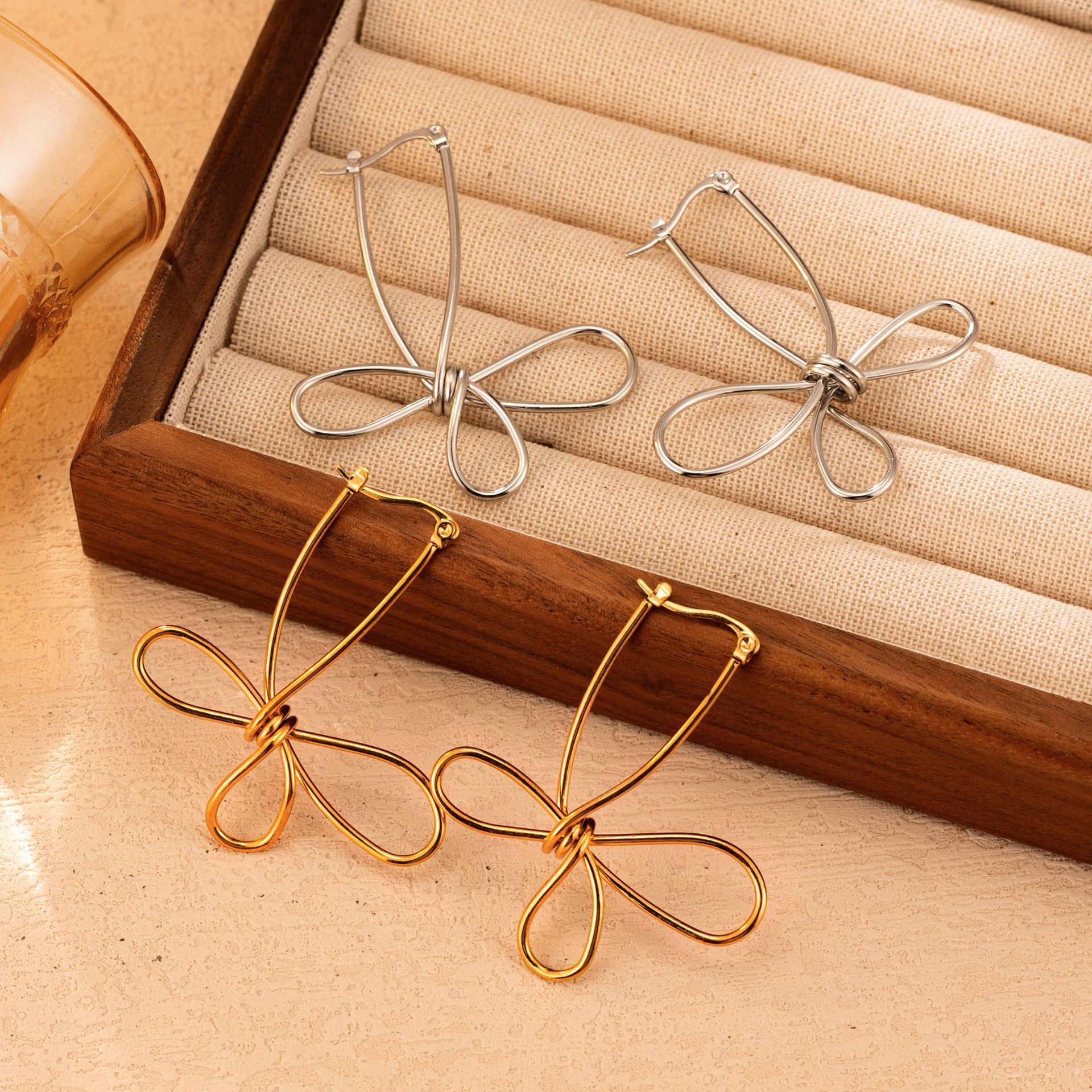 Cross-Border Fashion Petal Shape Stainless Steel Knotted Earrings Women's Trendy 18K High-End Versatile Earrings Wholesale