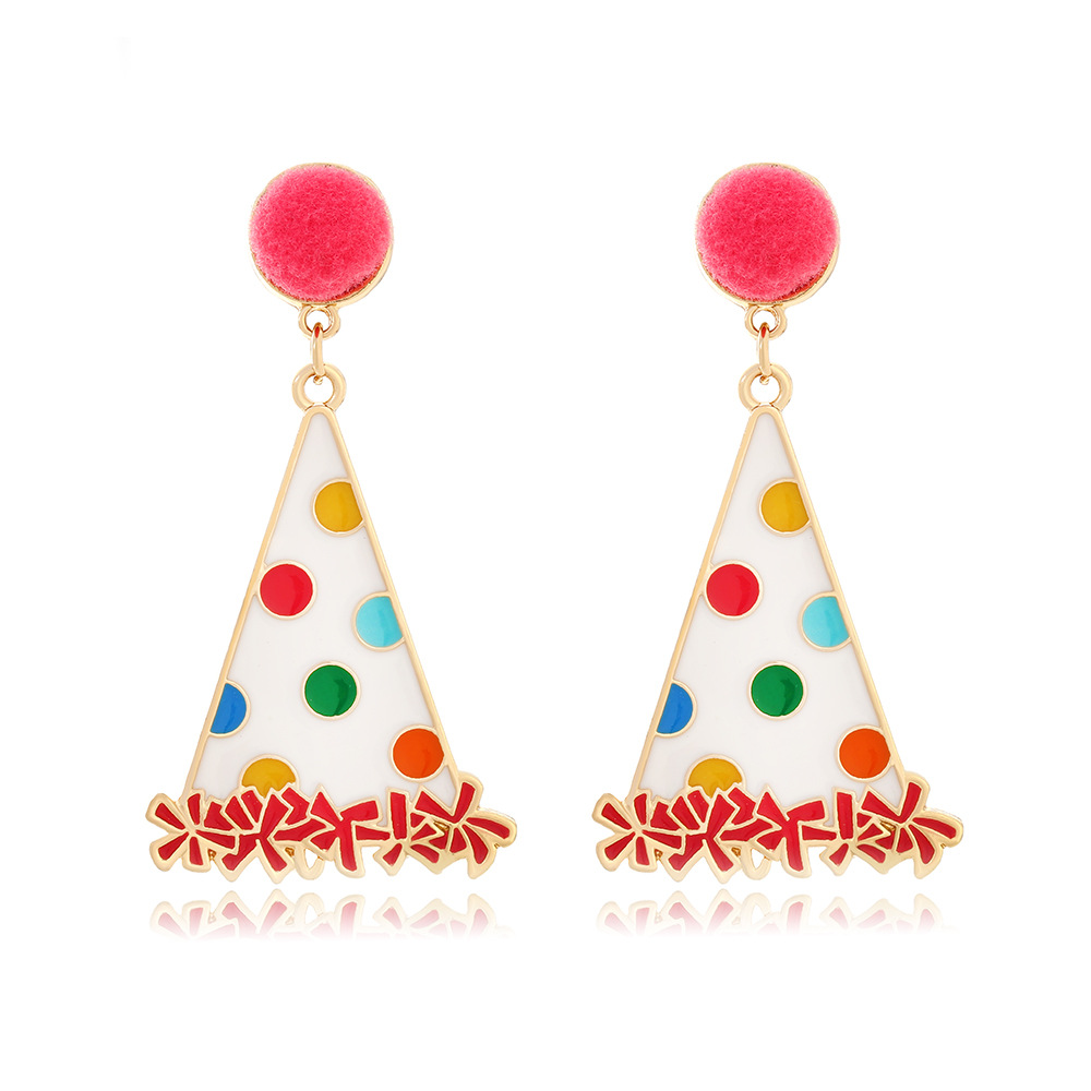 European and American Sweet Cute Hair Ball Enamel Birthday Hat Pendant Earrings Creative Design Party Oil Dropping Earrings Women