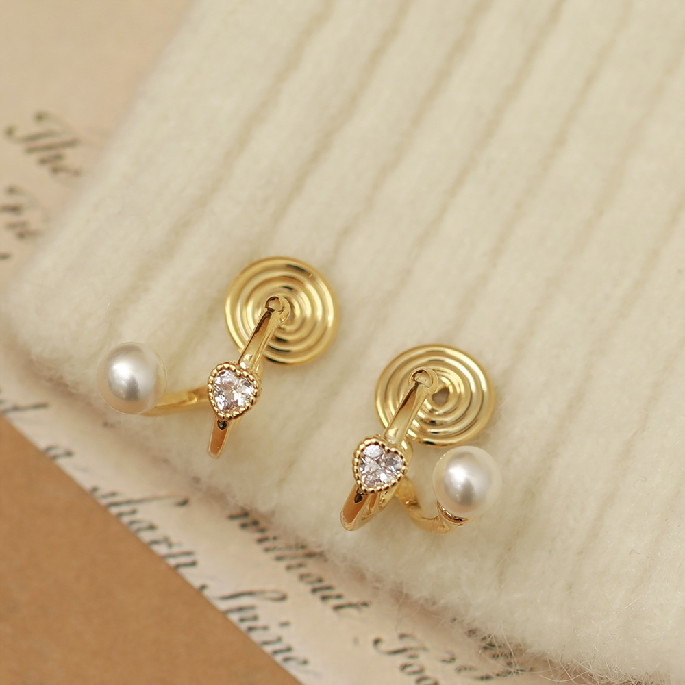 Pearl mosquito coil ear clip for women 2024 New exquisite Lovely zircon earless earrings cute sweet earrings for women