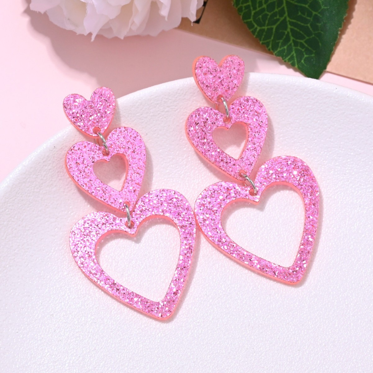 Valentine's Day Love Earrings Acrylic Stereo Sequins quicksand Peach Heart Earrings Sweet Fashion Vintage Earrings