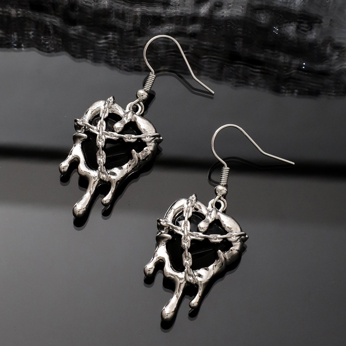 European and American Cross-border Creative Imprisoned Heart Lava Love Blood Punk Earrings Women's Tide Dark Earrings Wholesale