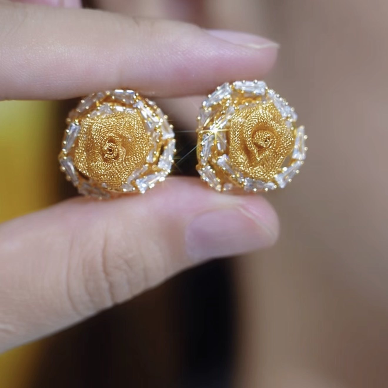 Autumn and Winter Light Coffee Gold Ear Bone Nail Collection, Sparkling Zircon Elegant, Versatile Fashionable Earrings for Women, Sweet, Fresh and Exquisite