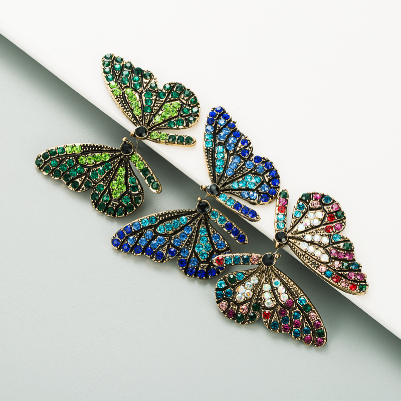 European and American style personality design butterfly wings colored diamond series earrings alloy diamond cute girl heart ear studs earrings