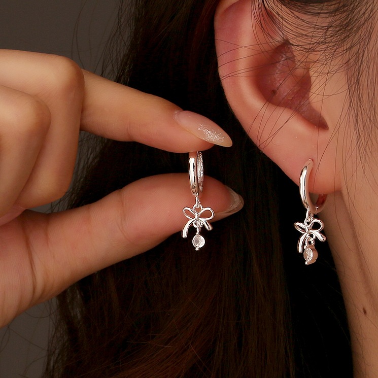 New Bow Tassel Short Ear Buckle Ear Ring Girls Design Niche All-match Light Luxury Zircon Pendant Earrings