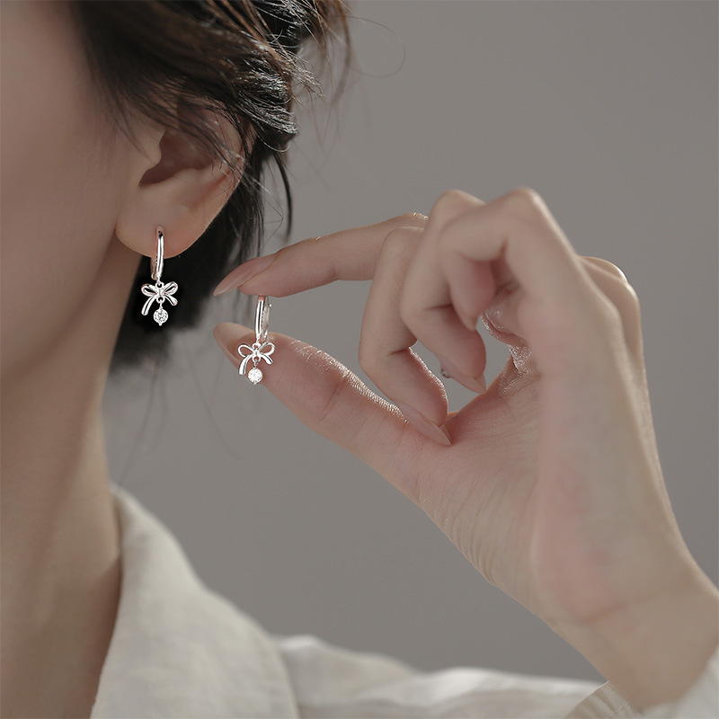 Bow Earrings Earrings Girls 2024 New Design Niche Easiest for Match Light Luxury Zircon Pendant Earrings Earrings