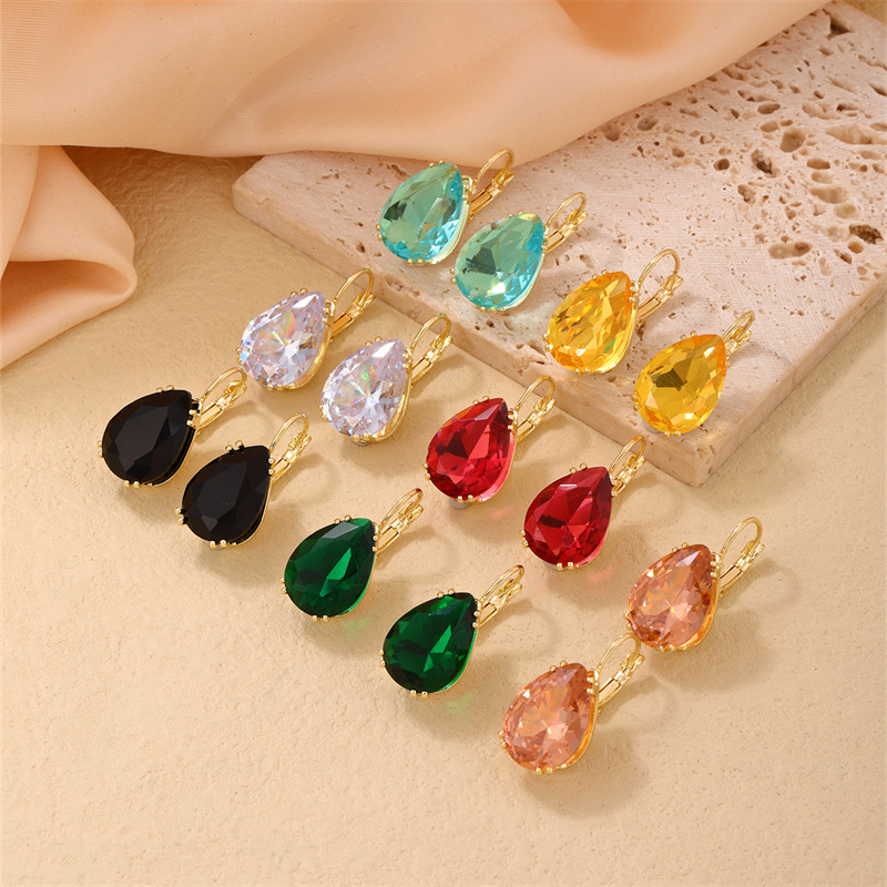 Huajie Water Drop Shape Water Drop Earrings Inlaid with Synthetic Gem Hook Earrings Women's Symbol of Beauty and Elegance