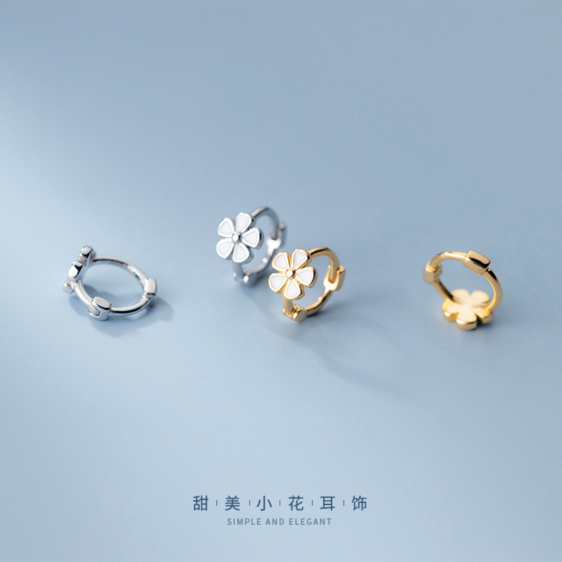 Japanese and Korean sweet fashion personality simple women's copper ear buckle flower pendant earrings wholesale C0858
