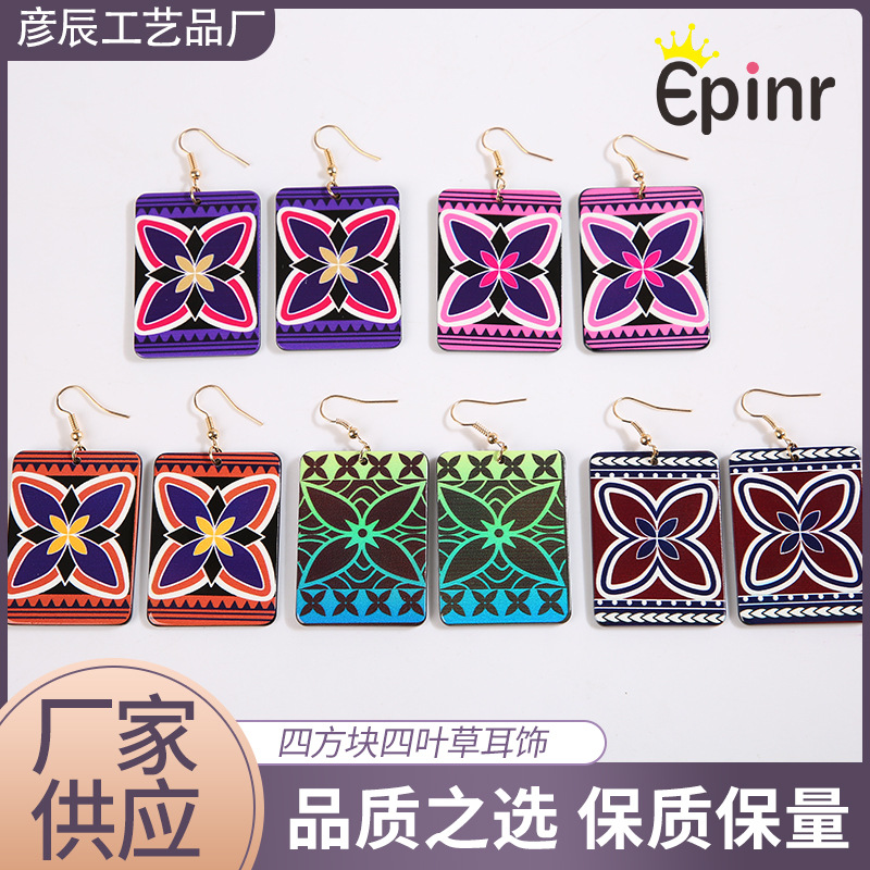 Wanxianger Square Acrylic Earrings Temperament Ethnic Style Four-leaf Flower Women's Simple Ear Hook Cross-border Jewelry Wholesale