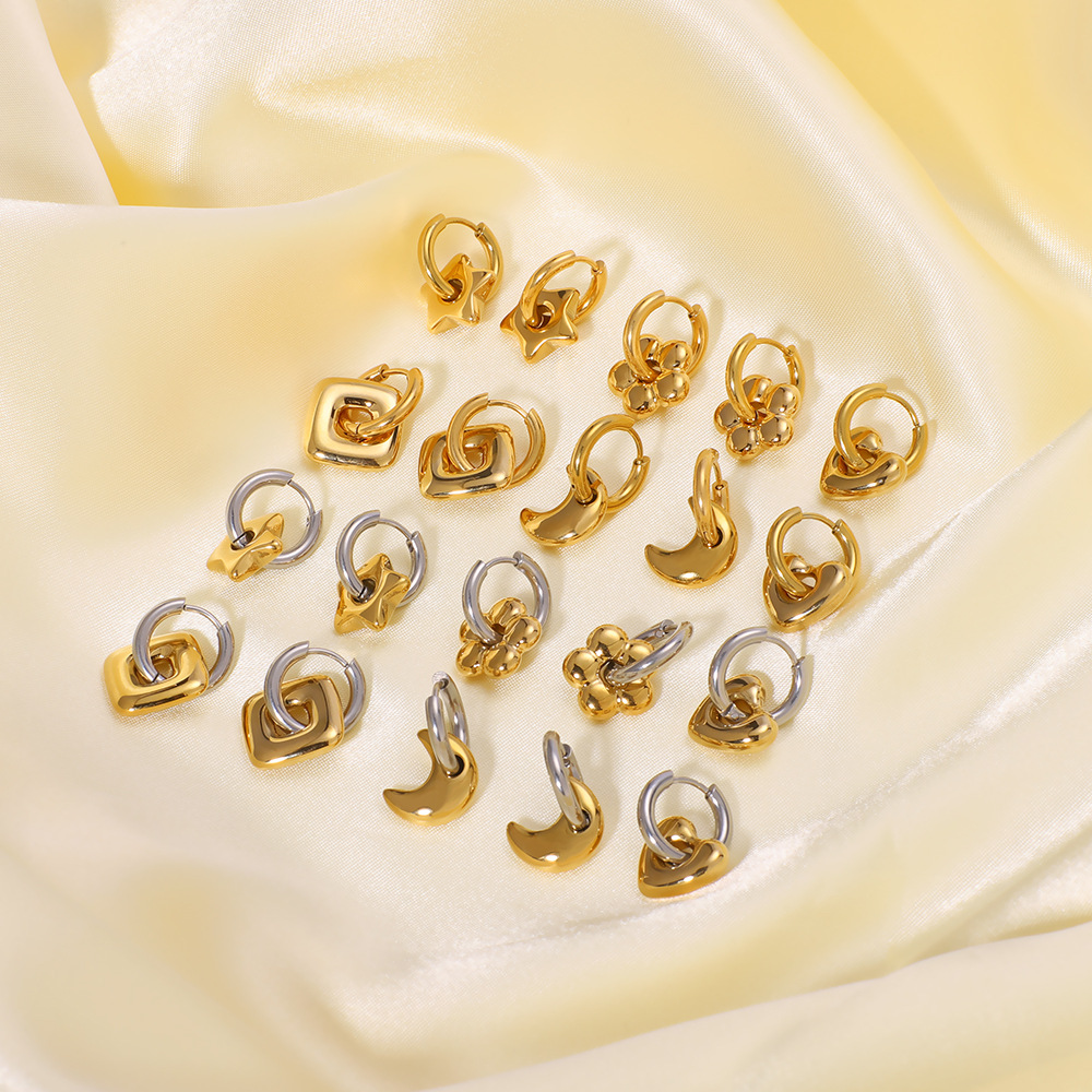 European and American stainless steel earrings women's love flower crescent geometric pendant earrings titanium steel gold steel color matching earrings