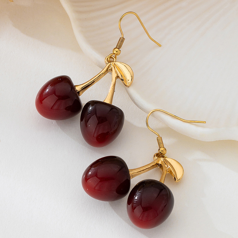 Korean Sweet Girl Artificial Resin Fruit Cherry Ear Hooks Sweet Cool Style Exquisite Personalized Earrings Wholesale