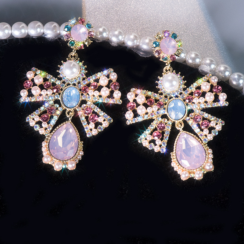 2021 New Arrival Bow Earrings Pink Exaggerated Fashion Earrings Hollow Pearl Women's Silver Pin Earrings