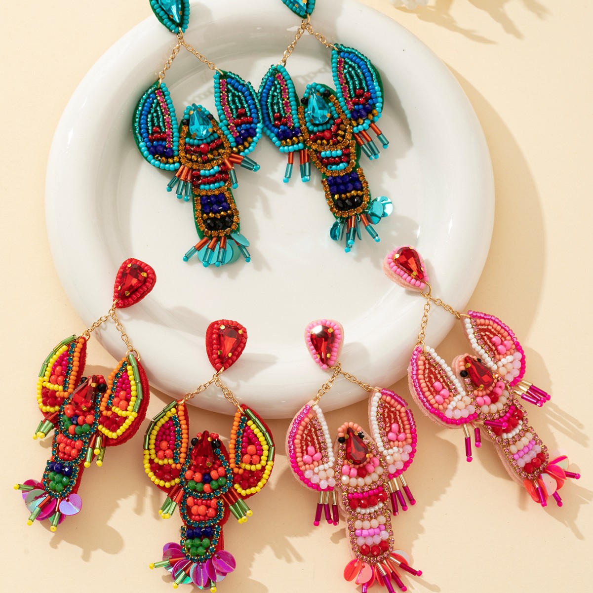 Hot sale cartoon crayfish earrings DIY handmade nail bead earrings fashion trend women's earrings factory direct sales