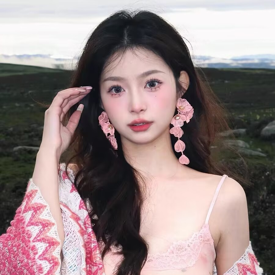 Sweet Pink Flower Tassel Earrings 2025 New Holiday Style Light Luxury Elegant Design Sense Exaggerated Earrings Earrings