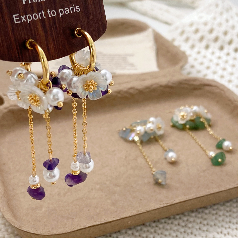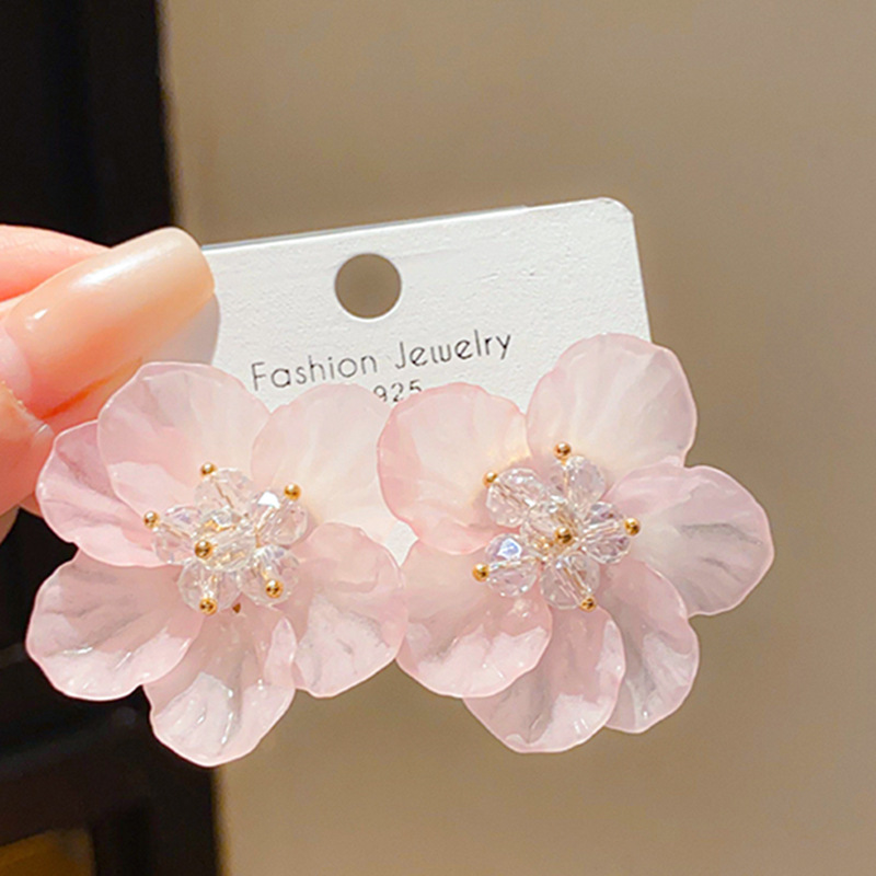 Silver Needle Light Luxury Acrylic Crystal Shell Petal Flower Earrings Sweet Fashion Niche Temperament High-End Earrings