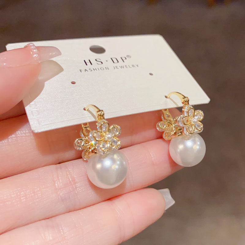 French Fashion Light Luxury Versatile Zircon Flower Pearl Earrings Niche Design Sweet High-End Earrings Wholesale