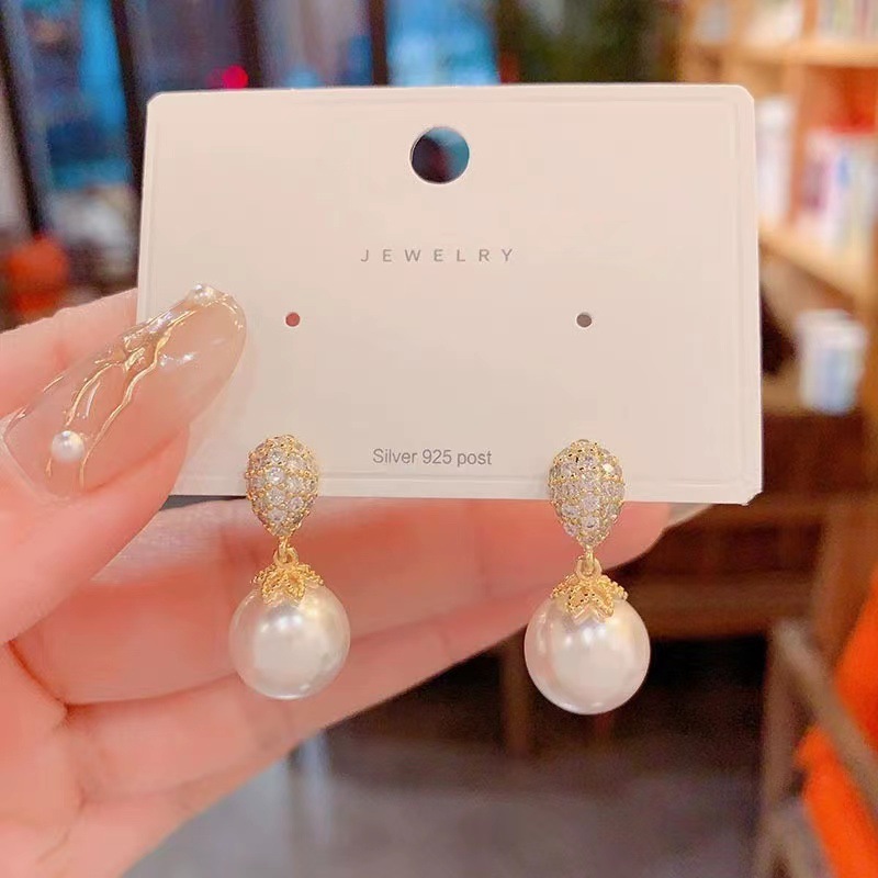 s925 silver needle popular sweet pearl earrings luxury elegant high-end diamond-embedded earrings exquisite small earrings