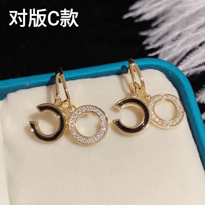 Exquisite Fashion Letter Earrings Sweet Light Luxury High-end Diamond Earrings Distinctive All-match Slimming Small Chanel Style Earrings
