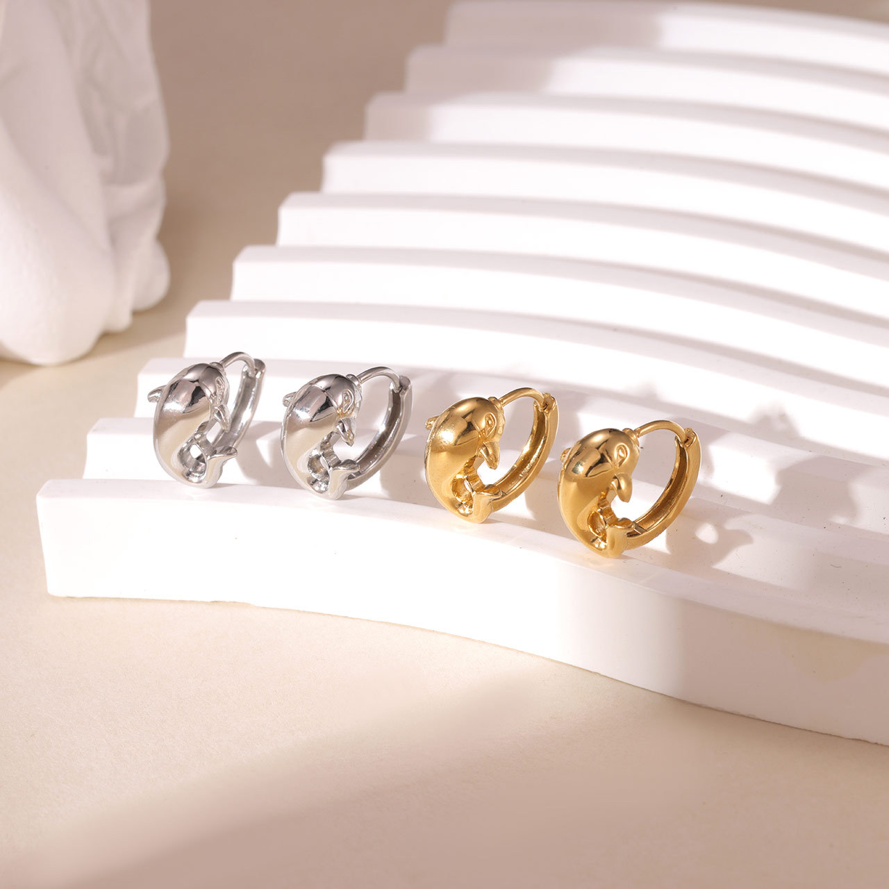 Cross-Border Titanium Steel Dolphin Earrings for Women, Stylish and Cute Animal Ear Cuffs, Minimalist Jewelry