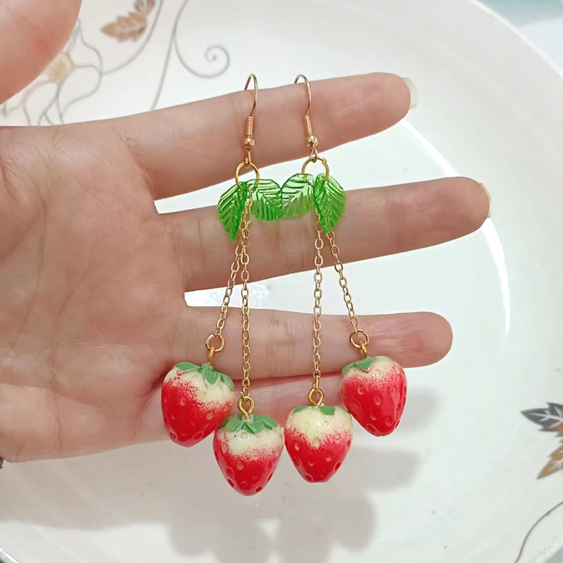 Distinctive Sweet Three-dimensional Resin Strawberry Earrings Fashion Creative Fun Simulation Fruit Earrings Ear Jewelry Women