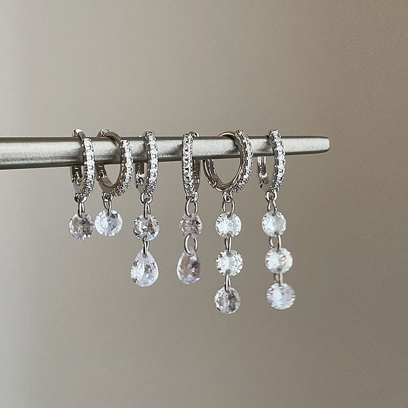 Simple and High-End Ice-Transparent Zirconium Earrings for Women, Niche, Unique, Fashionable, Trendy, Work Clothing Elegant, Versatile Earrings