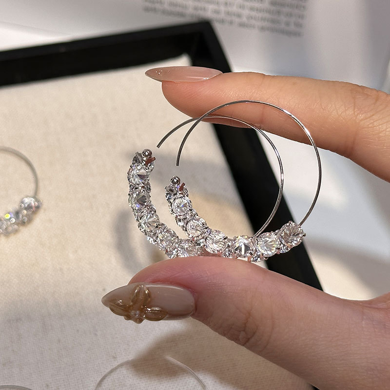 Fashion geometric full diamond ear buckle women's new fashion Korean style personality temperament all-match round earrings Internet celebrity ear jewelry