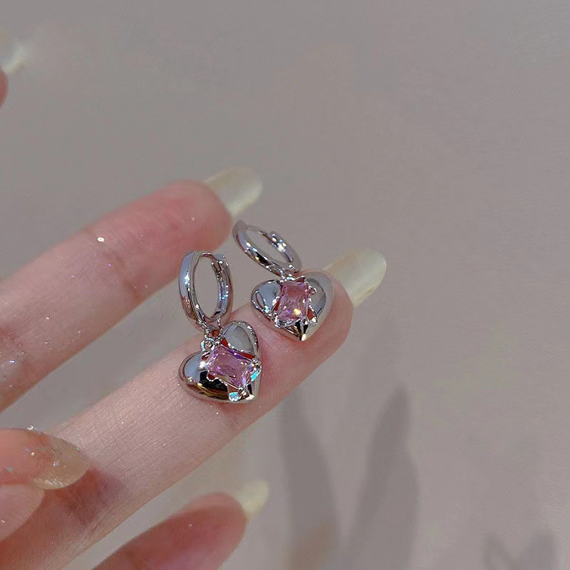s925 Korean Fashion Sweet Cold Style Pink Love Zircon Ear Buckle Elegant Light Luxury Niche All-match Earrings for Women