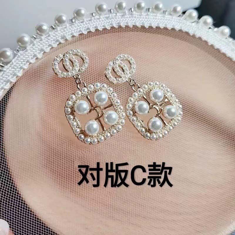 Sweet Fashion Pearl Fragrance Earrings Gentle Temperament All-match Double C Fragrance Granny Earrings Distinctive Exaggerated Earrings