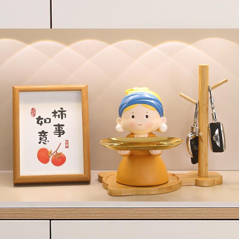Creative Tray Storage Ornaments Pearl Girl Home Living Room Decoration Entrance Key Storage Ornaments Housewarming Gift