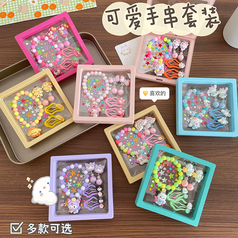 Little Red Book Selection Creative Children's Bracelet Earrings Cute Cartoon Small Hairpin Gem Sticker Combination suit Color