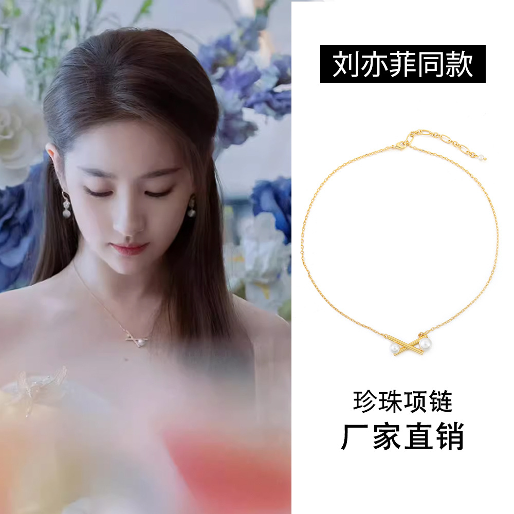 The Story of Rose Liu Yifei Huang Yimei Kiss Cross akoya Pearl Necklace Women's Light Luxury High-end Sense