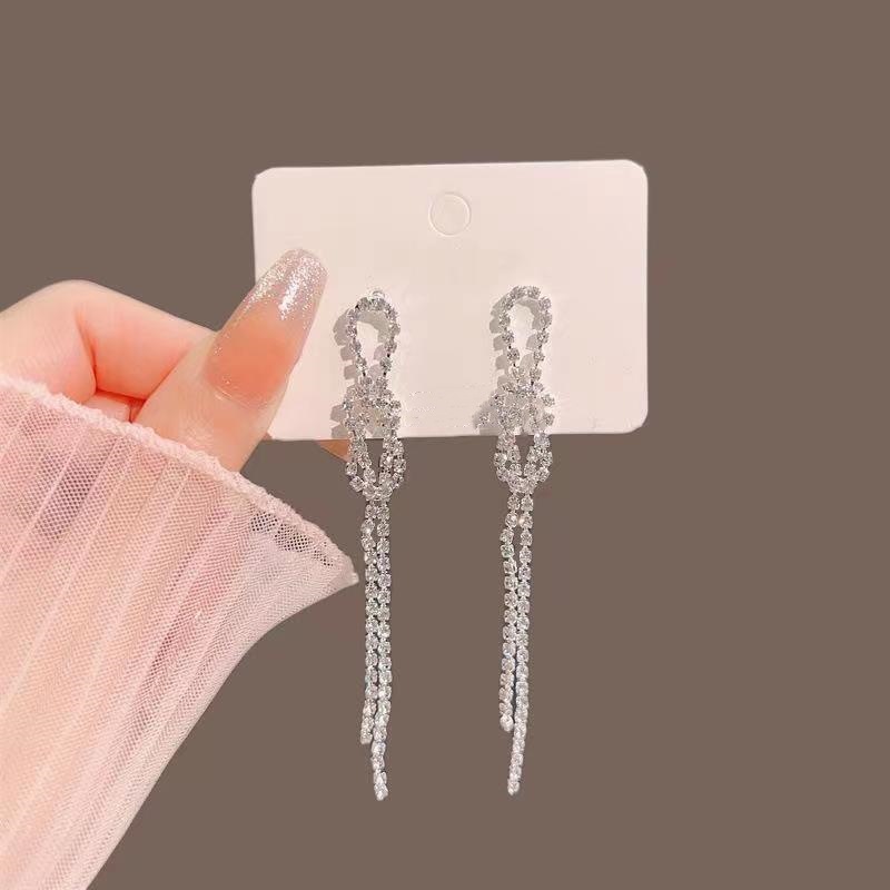 S925 silver needle long tassel earrings women's net red cool temperament full diamond trendy high-grade light luxury earrings earrings