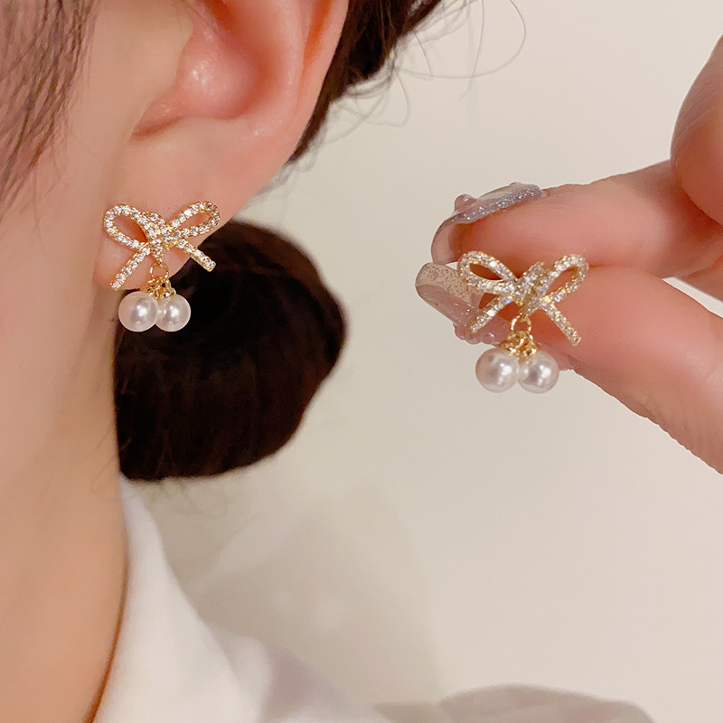 TikTok Popular Sweet Elegant Fashion Bow Pearl Earrings High-end Light Luxury Niche Design Earrings