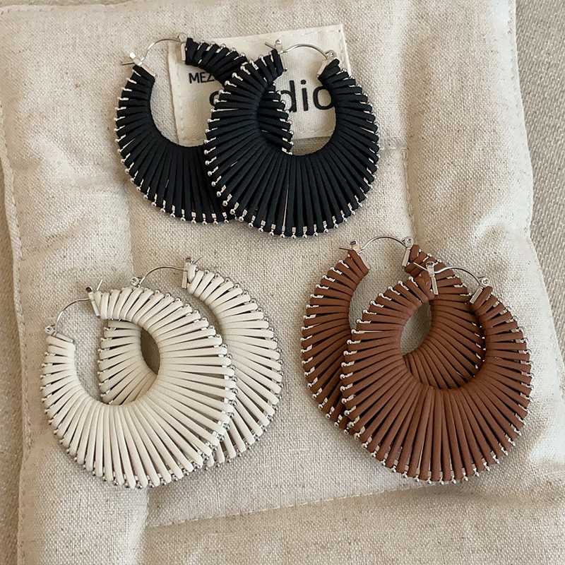 Exaggerated Stylish Hollow Braided Round Earrings for Women European and American Trendyy Elegant Niche Fashion Commuter Earrings Earrings