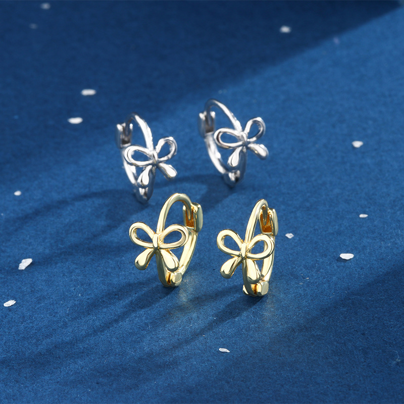 Sweet bow ear buckle female ins simple cold style exquisite hollow personality niche design earrings