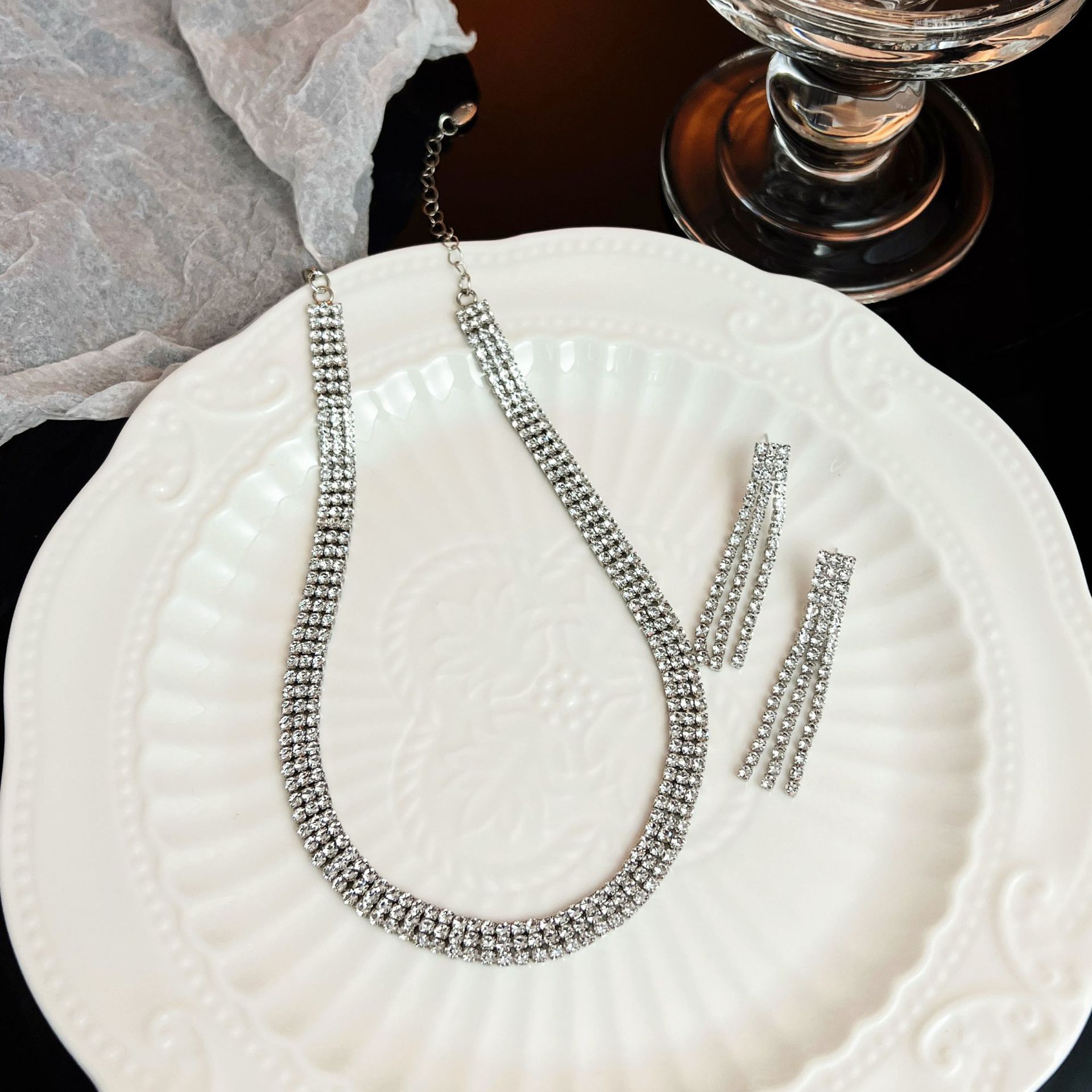 New Three-drain Diamond Set Chain for Women 2024 Summer High-end Necklace Versatile Accessible Luxury Earrings Trendyy Clavicle Chain