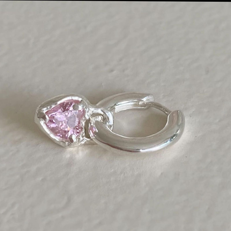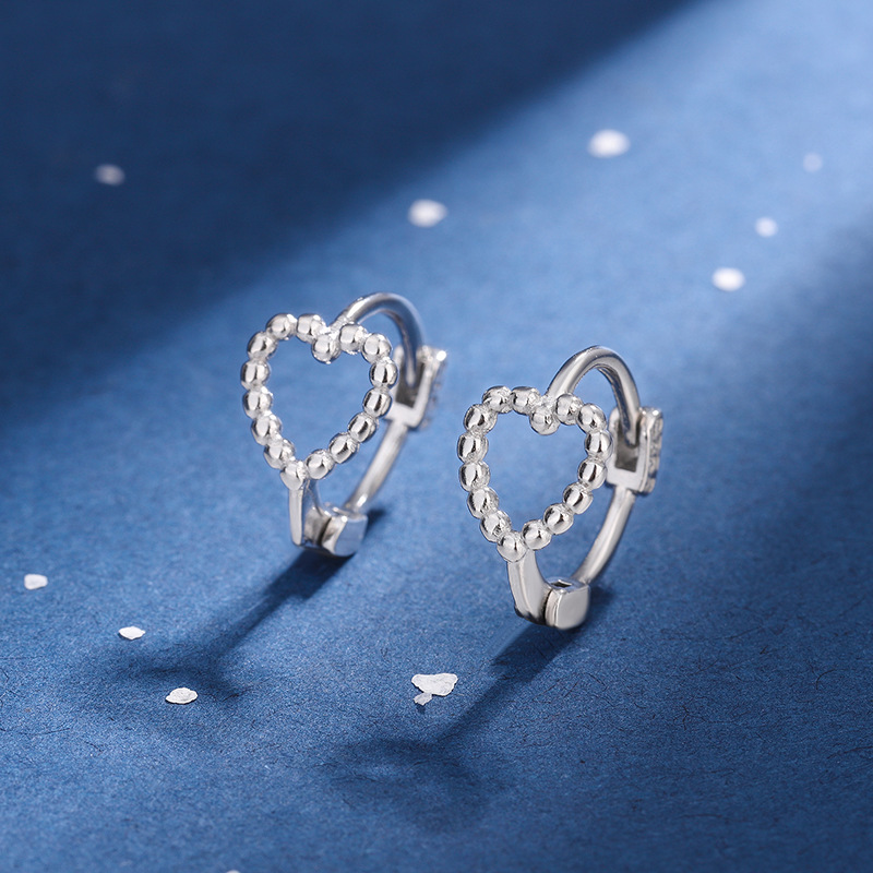 s925 Heart-shaped Ear Buckle Women's ins Summer New Fashionable Small Sweet Student Hollow Love Ear Ring Earrings