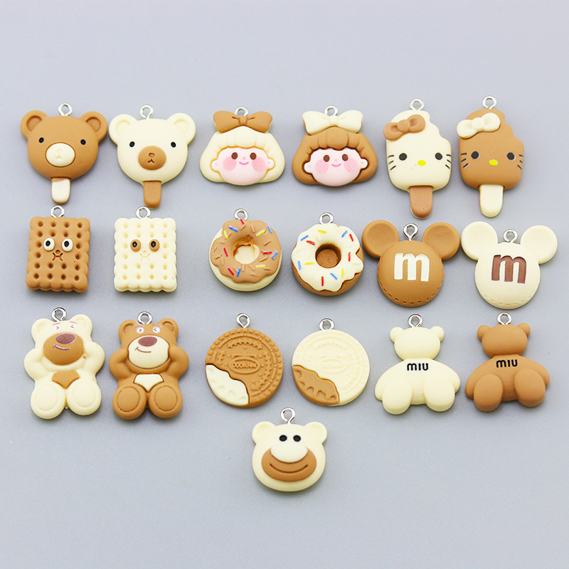DIY Accessories Resin Milk Tea Color Simulation Biscuit Donut Bear Pendant Keychain Earrings Accessories