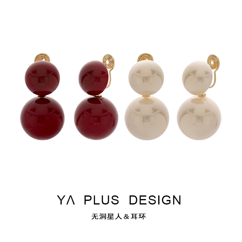Red Double Round Pearl Earrings, Sweet Little Fragrance Earrings, Elegant and Glossy, Non-Pierced Ear Clips, Mosquito Coil Discs