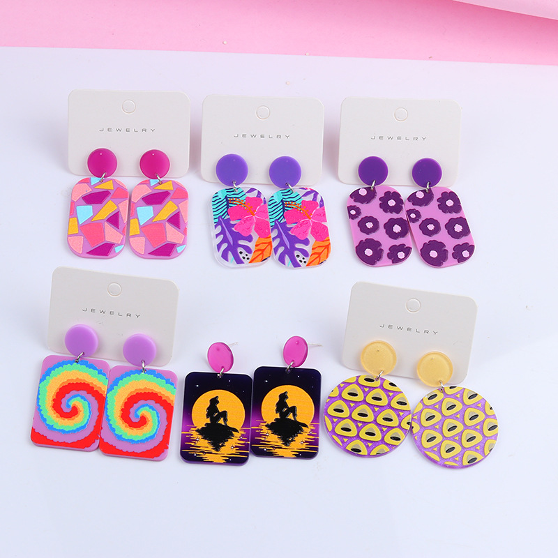 Foreign trade new color block acrylic printed embossed earrings earrings fashion geometric earrings ear jewelry women